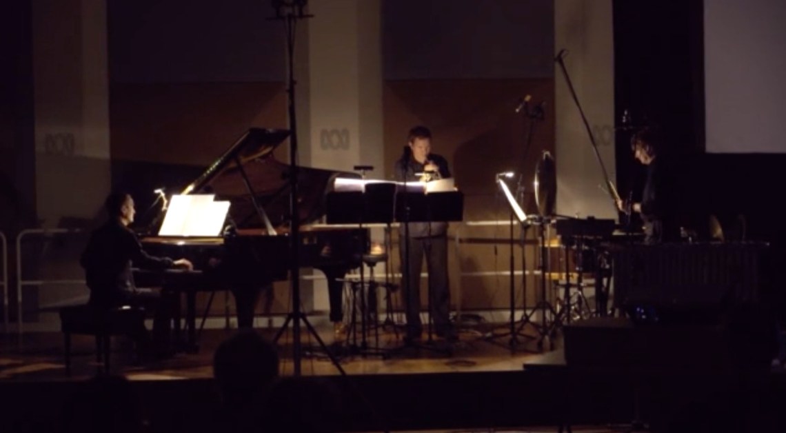 Performance note: Tristram Williams (trumpet), Peter Neville (percussion) and Michael Kieran Harvey (piano) with a short film by Iqbal Barkat and Vincent Tay (Filigree Films) with images by Luping Zeng (artist) at the Melbourne Composers League-ABC Classic FM ‘Where are the Sounds of Joy’ concert, Iwaki Auditorium on 26 September 2015.