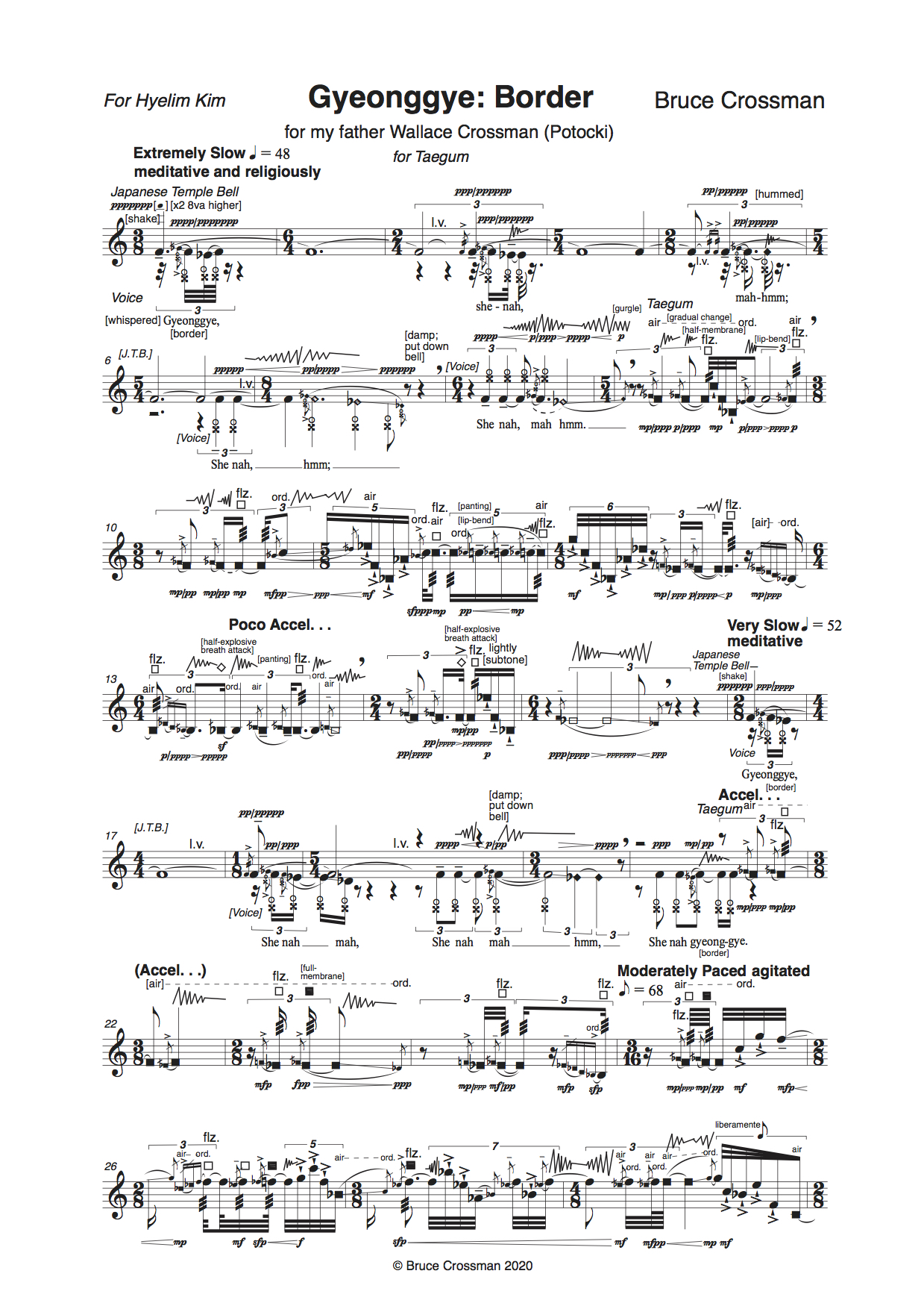 Music: Bruce Crossman, Gyeonggye: Border (solo taegŭm), Australian Music Centre: Sydney, 2020