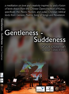The wealth of musical activity in Pacific rim countries is clearly a source of inspiration to Crossman, adding a fascinating dimension to music from a European heritage. His discerning blend of East and West creates an intriguing, kaleidoscopic sonic world, one that carries a strong emotional impact… Gentleness-Suddenness is described by Crossman as a “meditation on love and creativity”, settings of texts from Chinese opera tradition of Kunqu (The Peony Pavilion) and Judeo-Christian Biblical texts from Genesis, Psalms, Song of Songs and Revelation. Given those inspirational sources, it is not surprising that this piece is a tour-de-force.