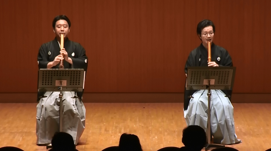 Shakuhachi shihan (master) Tomotsune Bizan intercut the earthy, long breath tones of shihan Kikuchi Kouzan’s unlacquered instrument with strong refined tones of the lacquered equivalent in Spirit-Presence at Asian Music Festival 2014