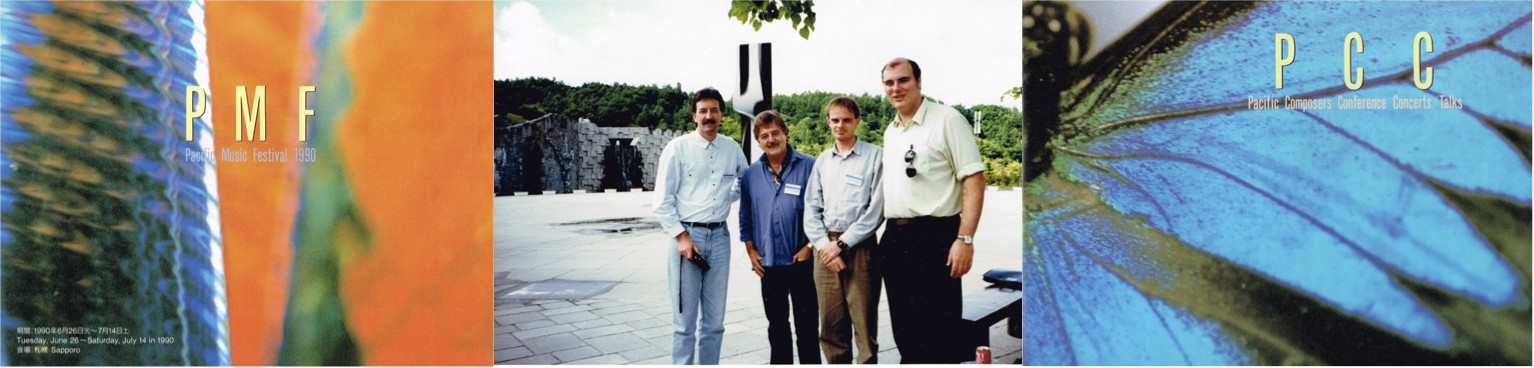 Bruce Crossman, Composition Fellow, with Peter Sculthorpe, Brenton Broadstock, and Ian Shanahan at the Pacific Composers Conference/Pacific Music Festival 1990 in Sapporo, Japan.