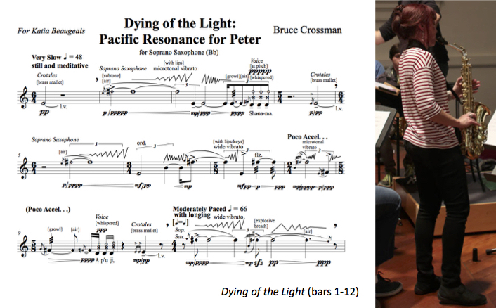 Dying of the Light: Pacific Resonance for Peter (solo saxophone), Katia Beaugeais, Royal Northern College of Music, Manchester, England, 26-27 September 2017