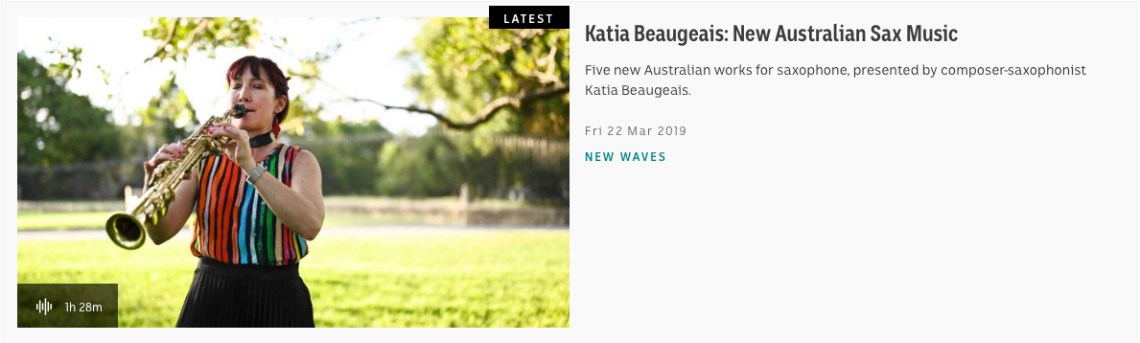 ABC Classic radio, New Waves podcast, Katia Beaugeais: New Australian Sax Music, Australia