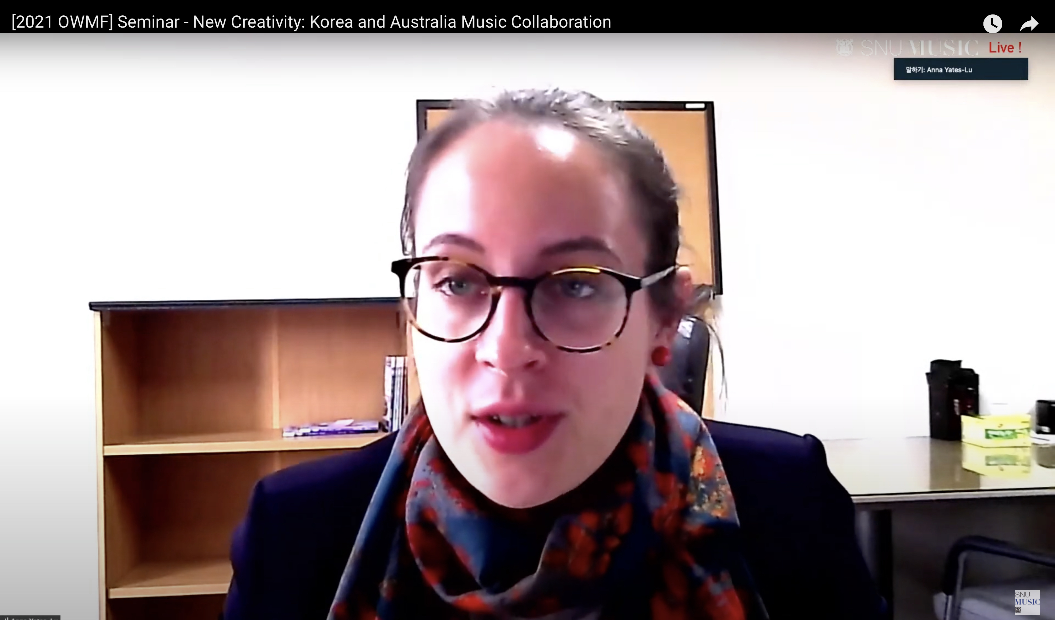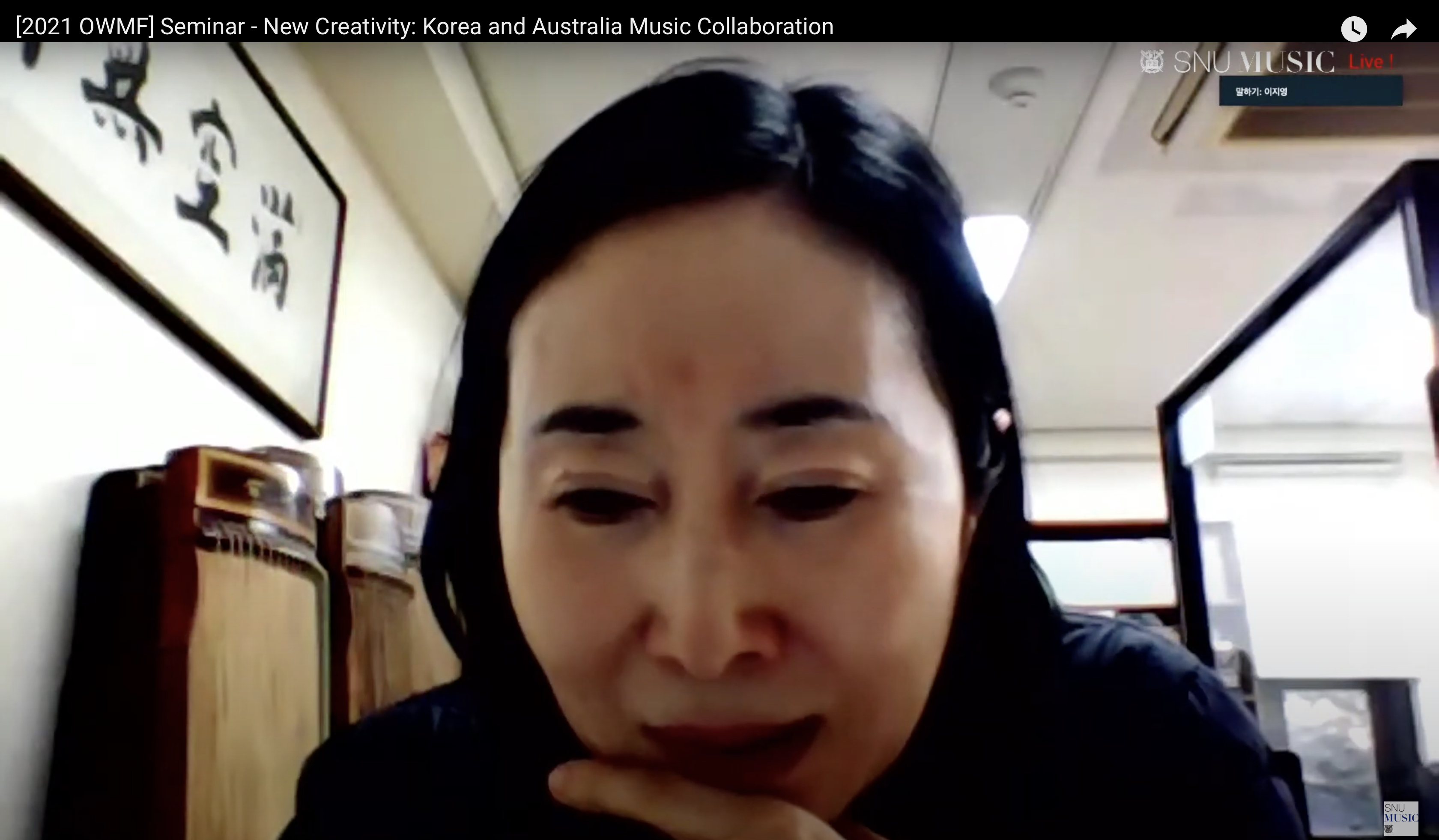 The seminar on new creativity for Korean music was an international public zoom seminar with the panel, chaired by distinguished ethnomusicologist Dr Anna-Yates-Lu (centre), and included Korea’s leading gayageum performer, Professor Yi Jiyoung (SNU) with Dr Bruce Crossman (Western Sydney University) and Dr Hyelim Kim (Bath Spa University, UK).
