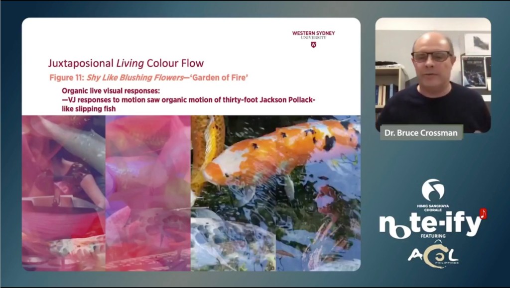 Bruce Crossman presented on his Chinese opera-inspired work Shy Like Blushing Flowers in a zoom Composition Seminar at Note-ify 2021, Himig Sanghaya Chorale/ Asian Composers League Philippines, Manilla, Philippines, with convenor Professor Marie Jocelyn Marfil (University of the Philippines), 8pm Philippines (10pm Australia), Saturday 29thMay 2021. See: Himig Sanghaya Chorale