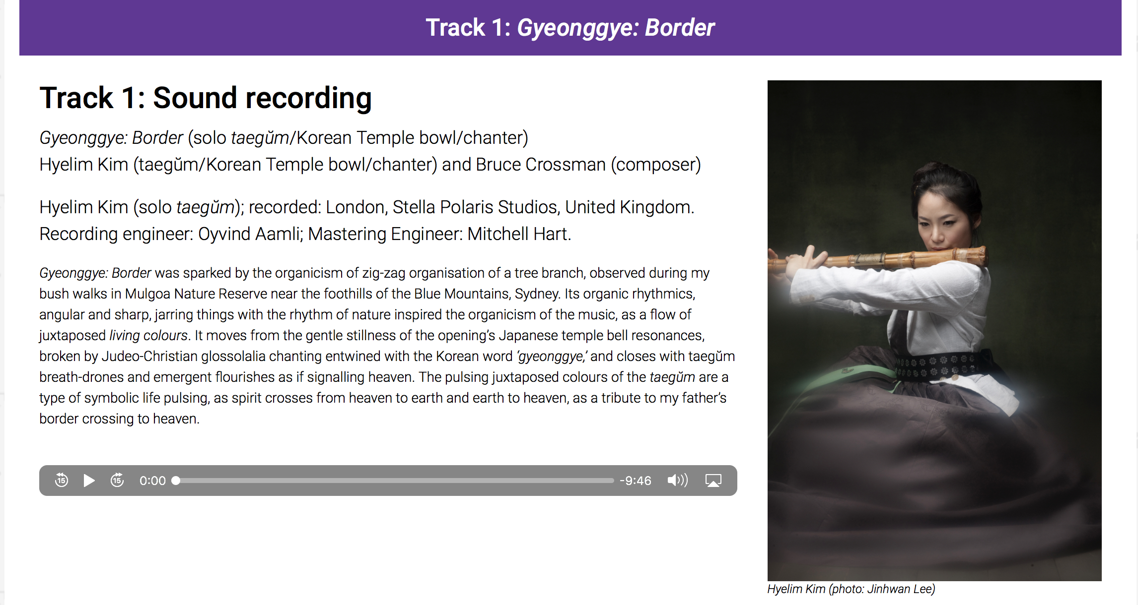 Bruce Crossman’s Gyeonggye: Border with Hyelim Kim (solo taegŭm/Korean Temple bowl/chanter) was featured at the Korea-Australia Music Exchange: Something Inexplicably Subtle: Intercultural Lateral Thinking from Heaven to Earth at Western Sydney University’s Research Creations Showcase 2021 on Friday 29th October.