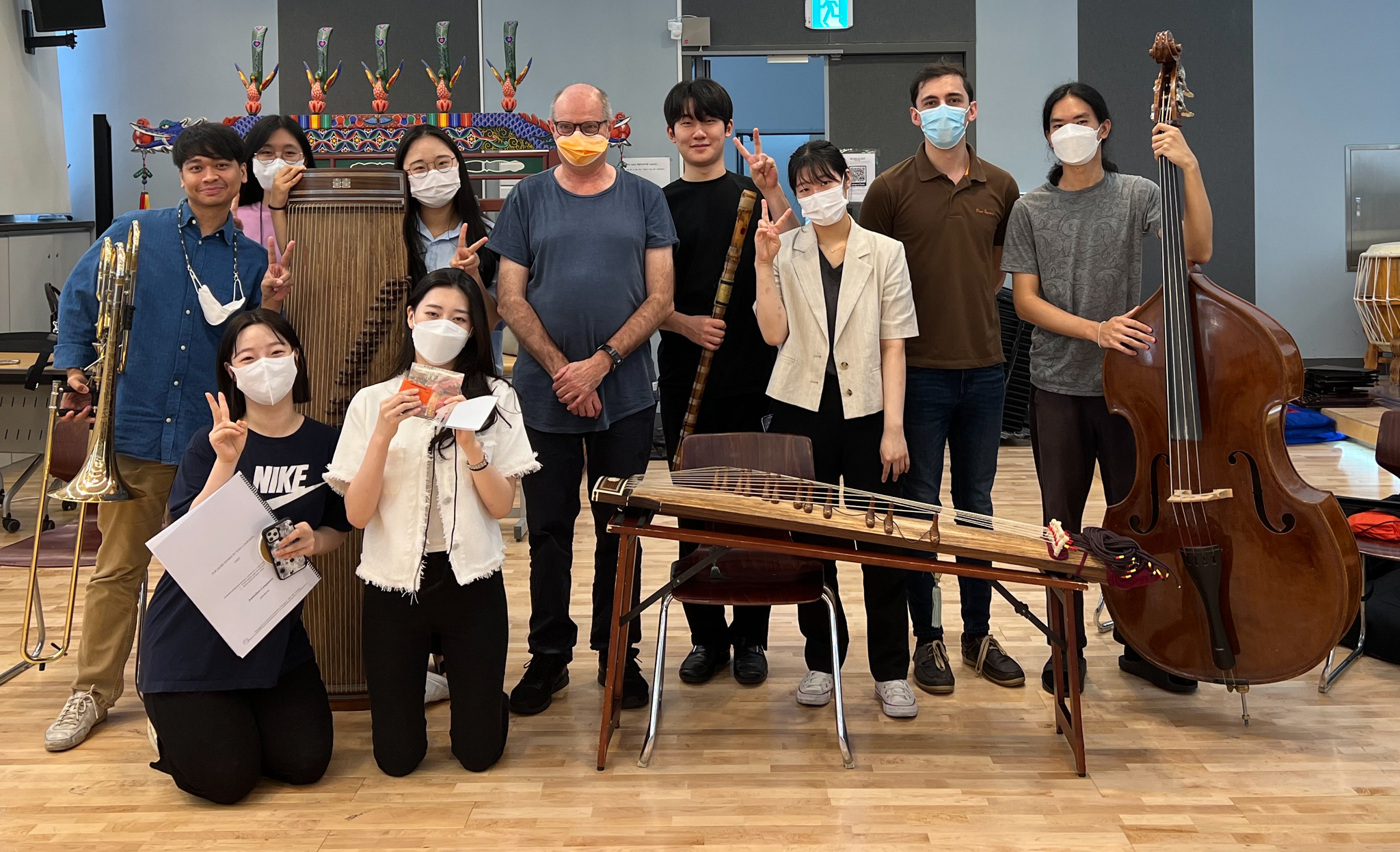 Two composers were thrust into the vibrancy of creative workshops with SNU undergraduate Korean traditional performers and students from the Princess Galyani Vadhana Institute of Music in Thailand. Experimental saxophonist/improviser-composer Ulrich Krieger (California Institute of the Arts) and Bruce Crossman (Western Sydney University) were Scholars/Artists-in-Residence at Seoul National University and worked with two teams of students bristling with performative and imaginative talent towards an end-time concert—a sort of battle of the bands between a reinvented Pansori tale (except they killed the heroine off) and a traditional Korean instrumental rendering of a Lou Reed song. Crossman was particularly proud of his group, Team Pansori (Pansori singers Hye Yui and Soyeon Lim, taegŭm Hyunsoo Park, sanjo gayageum Minjoo Kang, 25-string gayageum Seunghye Kang, trombone Songklod Nunthakasem and double bass Putter Ru), with their amazing coloristic sensitivity, alive virtuosity, and creative invention.
