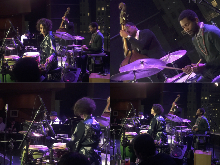 As a composer, I felt that the sharp, understated polite articulation of New Yorkers lived in the live-jazz I heard at the Lincoln Centre on Sunday night. The Nicolas Payton Quartet crackled into the air in the fifth-floor curvaceous jazz venue of the Lincoln Centre. It seemed that the s-shaped walls, almost like a half-curved treble clef, were actually the music emanating from the band. Payton’s opening haunting colouristic chords, subtly stalked and layered the air in perfume-like moments of rich float-chords stacked to dissonant lingering moments of play. This unassuming but subtle play spread through the quartet: the caressed skin drums of Jacquelene Acevedo, whose subtle Japanese floating-world sounds and Hokusai-like designer clothes, answering Payton’s arioso-piano notes, as if the two were one without looking; drummer Joe Dyson, with his discreet lithe-physical presence, set up disciplined and concise rhythmic propulsion with subtle placed explosions of snare-rim shots in colour exchanges with the mute skin-drum moves of Acevedo. Overlapping complexity of
