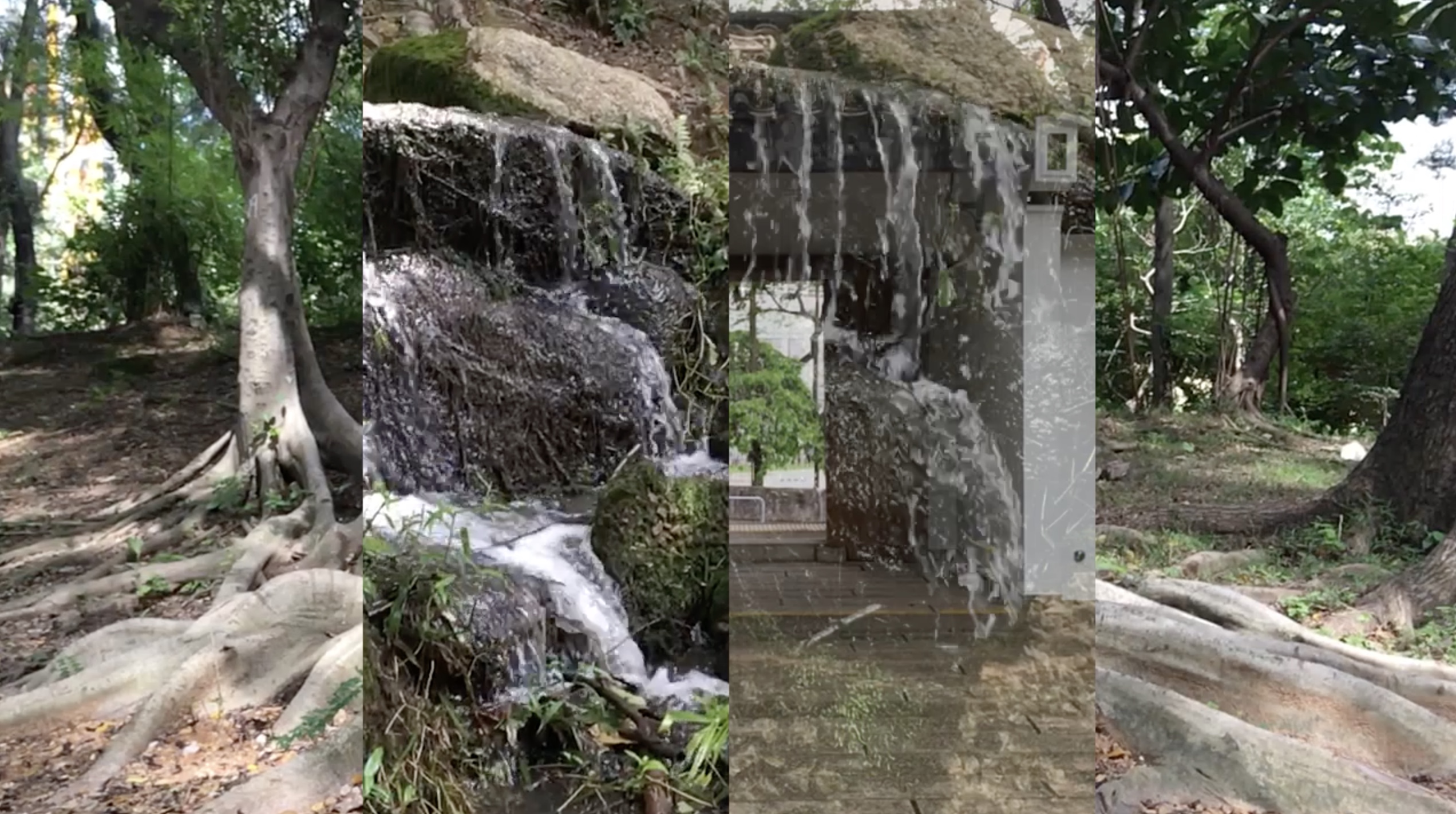 Killalea’s strong rooted tree images of Hong Kong with Picasso-like Cubist space of modern cityscapes, where emptiness and skyscrapers suggest intimate presence, is a reinterpretation of ancient Chinese playwright Tang Xianzu’s ‘clouding’ intimacy and sensual massive sonic bursts of sound with lingering metal delicacy of my own “Fragrant Rain Clouds of Love,” which is in itself an interlude dream section of the larger music-theatre work. The ancient Kunqu tradition, following Daoist principles of the affinity of the artist with nature, suggests the erotic through the natural reverberance of spring energies and is reinterpreted by Killalea as the gently pulsing presence of Hong Kong as a contemporary ‘sensual clouding’. Here, following ancient Chinese poetry traditions, allusion is paramount visually in the film—which in itself is used to frame the live trio sounds; the gentle flow of time through water (see Figure 4) becomes intimate as do the skyscraper slow movements yet they are peppered with the slow cruising humour of the passing car motion and musing.