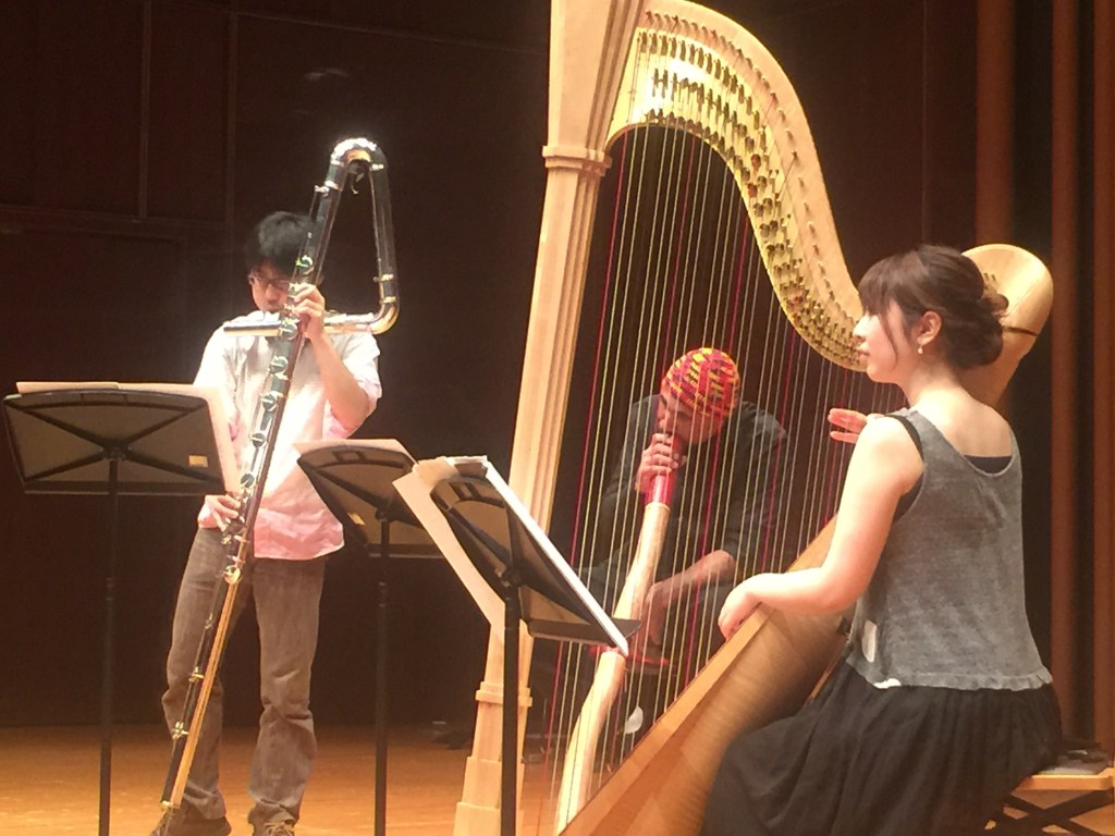 My own solo harp work Emergence from Darkness, opened the concert with emergent noise tones evolving into virtuosic, momentary flourishes in a distilled meditative structure; its line and ebb and flow of passing moments were beautifully handled by Tokyo harpist Takano Reine—at once fragile sensitivity and vigorous kinetic virtuosity that suggested her Paris training and natural sense of time-flow of sound.