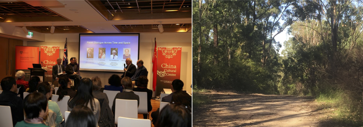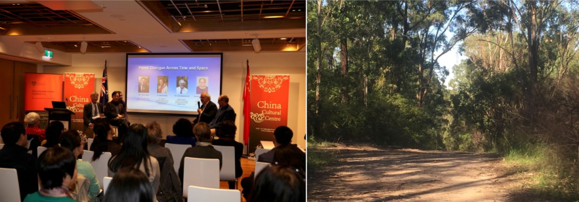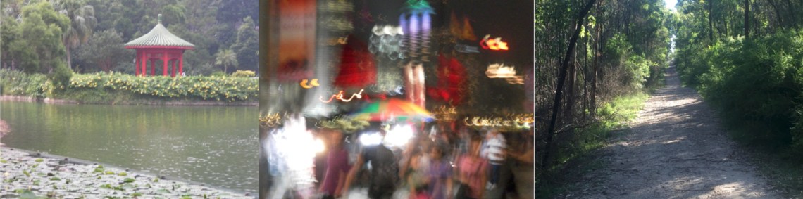 Winding my way through the bush on my morning sojourn at the foot of the Blue Mountains in Sydney, whilst puzzled kangaroos look quizzically at my bright orange ASICS running shoes, I am caught in the rhythm of gently undulating East coast Australian bush sounds—spacious cacophony of bellbirds with interweaving warbles and snaps of others. This reverberance of environment also mixes with memories of the undulating bustle of Kowloon in downtown Hong Kong and stillness of the Chinese University of Hong Kong’s reflective moment gardens and stasis sounds of floating Kunqu vocals—a short train journey form the city. This vibrancy of cultural movement and stillness married in my mind with the flow behind the Australian bush in its gentle interweaving warbling and wriggling of bird sounds and stillness.
